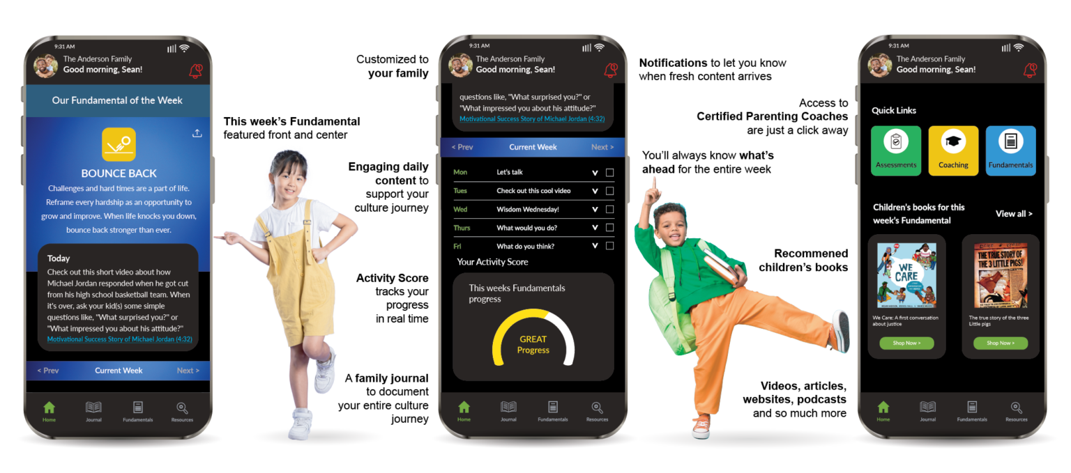 - Access to a growing resources section full of videos, articles, websites, and podcasts relating to your specific set of family Fundamentals